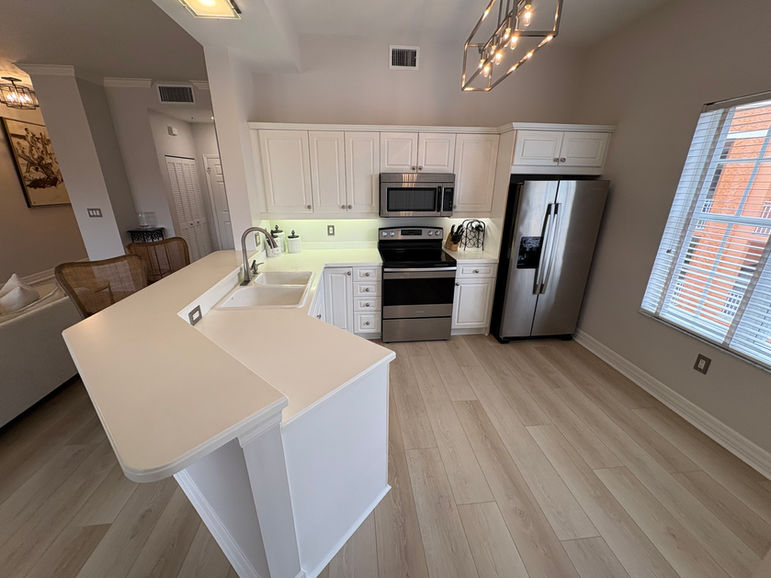 Enjoy the ultimate seasonal Naples getaway in this beautifully furnished Bayfront condo, available for 30-day minimum stays and offered completely turn-key. The residence features two inviting outdoor spaces—a private balcony off the bedroom and a covered lanai off the living room—both overlooking Bayfront’s charming fountains with Naples Bay glistening just beyond. Inside, the bright open layout is filled with natural light and comfortably appointed furnishings, complemented by in-unit laundry and a convenient half bath for visiting guests. Bayfront’s resort-style amenities include two rooftop pools and spas, tennis and pickleball courts, a fitness center, BBQ grilling stations, and secure garage parking. Step outside your door to enjoy waterfront dining, boutique shopping, and the marina, or take a short stroll to the world-class restaurants, galleries, and nightlife of Fifth Avenue South—making this condo the perfect blend of comfort, convenience, and Naples lifestyle.