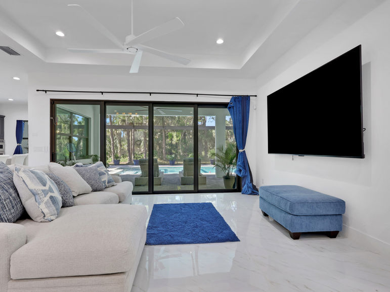 the day is over unwind in the elegant primary suite, with a lavish primary bathroom and direct access to the pool and outdoor fun. The
